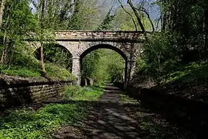 The trackbed can be followed on a bridleway running north to Wetherby and south across Wharfe Bridge to Newton Kyme. Sustrans Route 665. [5]