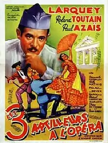 Three Artillerymen at the Opera (French: Trois artilleurs à l'opéra) is a 1938 French comedy film directed by André Chotin and starring Pierre Larquey, Roland Toutain and Paul Azaïs.[1]