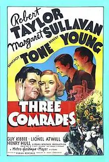 Three Comrades is a 1938 drama film directed by Frank Borzage and produced by Joseph L. Mankiewicz for MGM. The screenplay is by F. Scott Fitzgerald and Edward E. Paramore Jr., and was adapted from the novel Three Comrades by Erich Maria Remarque. It tells the story of the friendship of three young German soldiers following World War I, during the Weimar Republic and the rise of Nazism.