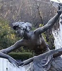 Three Dancing Maidens (German: Drei tanzende Mädchen) is a nymph fountain (Nymphenbrunnen) sculpture by Walter Schott. There are three full-size versions or castings of the bronze sculpture: One known as the Untermyer Fountain in Central Park, New York, the second one in Antwerp’s Den Brandt Park, and the third one in the courtyard of the Burg Schlitz castle, a grand hotel in the Mecklenburg region of northern Germany. Identification of the original sculpture created for Rudolf Mosse in 1909, and later looted by the Nazi Party is the subject of research, which appears to be leading to the version in the Burg Schlitz castle.[1] Three-quarters scale castings, likely to be examples of the sculptor's early drafts, can be found in Germany, Austria, and Northern California.