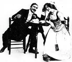 There were also a Broadway production in 1903 and international tours. The New York Times gave the show a rave review after its opening night in New York: "It is just possible that there have been better musical comedies ... but if there have, nobody in the audience could think of them at the end of the evening.... It was the marvel of ... good looks, good dancing, and good acting working together for the common weal."[1] The paper particularly praised the humour of G. P. Huntley and Maurice Farkoa. The title characters were played in New York by Maggie May, Madge Crichton, and Delia Mason.[1] Another rave review was published in the New York Dramatic Mirror.[2]