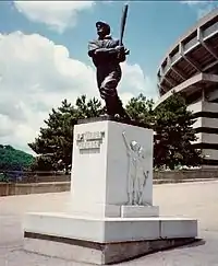 Ground was broken in 1968 on April 25,[15][19][20] and due to the Steelers' suggestions, the design was changed to enclose center field.[15] Construction continued, though it became plagued with problems such as thieves stealing materials from the building site.[15] In April 1969, construction was behind schedule and the target opening of April 1970 was deemed unlikely to be met.[21] That November, Arthur Gratz asked the city for an additional $3 million ($22.2 million today), which was granted.[22] In January 1970, the new target date was set for May 29; however, because of a failure to install the lights on schedule, opening day was pushed back to July 16.[22] The stadium was named in February 1969 for its location at the confluence of the Allegheny River and Monongahela River, which forms the Ohio River.[23][24] It would sometimes be called The House That Clemente Built after Pirates' right-fielder Roberto Clemente.[25]