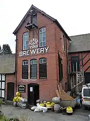 The Three Tuns Brewery in Bishop's Castle, Shropshire, England was established in 1642 on its current site, making it the oldest licensed brewery site in Britain.[1] While some of the current building dates to the seventeenth century, the main building is a Victorian tower brewery erected about 1888,[2] making it one of only four brewers in the United Kingdom to use such a method to brew beer.