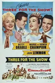 Three for the Show is a 1955 Technicolor and in CinemaScope musical comedy remake of Too Many Husbands. It stars actress Betty Grable, in her last musical, opposite Jack Lemmon, Gower Champion and Marge Champion. It is based on the 1919 play Home and Beauty by W. Somerset Maugham, which was retitled to Too Many Husbands when it came to New York.[2]
