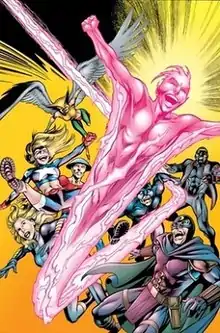 ![]() Thunderbolt appearing in the cover art of JSA vol. 1 #21, art by Alan Davis. | |