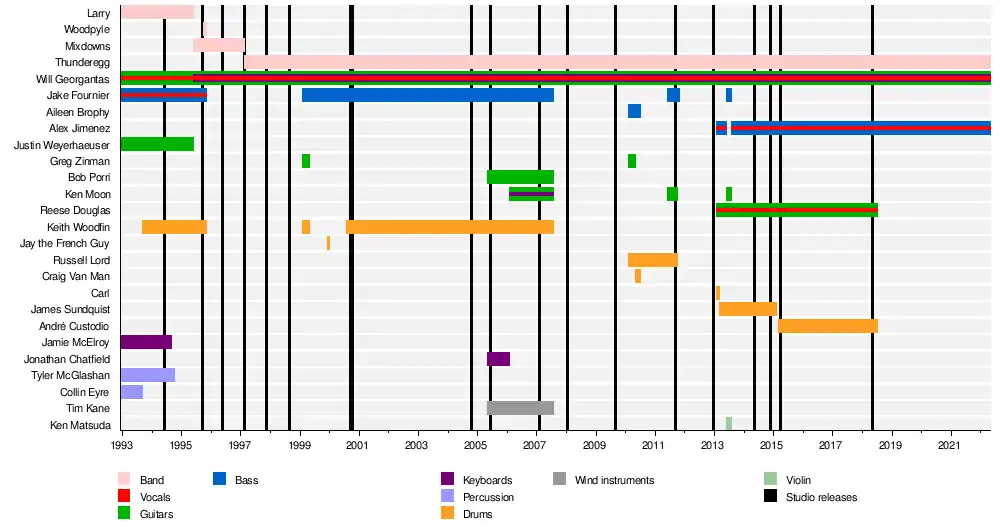| Past members | Jake Fournier Keith Woodfin Bob Porri Tim Kane Jonathan Chatfield Nathan Gohla Ken Moon Greg "Action" Zinman Aileen Brophy Russell Lord Ken Matsuda James Sundquist |