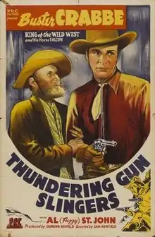 Thundering Gun Slingers is a 1944 American Western film directed by Sam Newfield and written by Fred Myton. The film stars Buster Crabbe, Al St. John, Frances Gladwin, Charles King, Jack Ingram and Karl Hackett. The film was released on March 25, 1944, by Producers Releasing Corporation.[1][2][3]