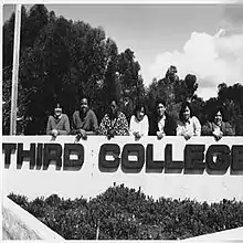 At its inception, students pushed for the new college to be named "Lumumba-Zapata College" in honor of the legendary twentieth century revolutionaries Patrice Lumumba and Emiliano Zapata. Unable to get approval for this name from UC Administration, the college was renamed Third College. This name did also inspire the idea that the student body would be one-third white students, one-third black students, and one-third definable minority students. Third College took up much of the activism that the campus was lacking, and the naming controversy was a catalyst for this movement. However, UCSD failed to attract enough black students for this plan to reach fruition and the UC Regents would not allow large scale deviation from the University of California's admission guidelines.[3]
