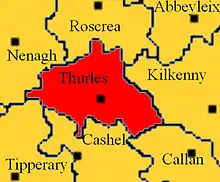 Thurles Poor Law Union, was an Irish Poor law union officially declared on 28 March 1839. It covered an area of 195 square miles (510 km2), mostly in North Tipperary but also including some of South Tipperary.[1] Although the boundaries of some poor law unions changed during the course of the 19th century, the Thurles union seems to have retained its original boundaries.[2]