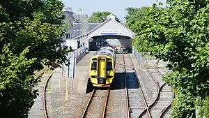 There is one platform, which is long enough to accommodate a nine-carriage train.[13] The station is fully wheelchair-accessible, but it is not monitored by CCTV.[14] The station has a ticket office, staffed between approximately 10:00 and 17:00 every day except Sundays. There are no self-service ticket machines or smartcard top-up facilities, although there are smartcard validators. Other facilities include: a free car park with 3 parking spaces, a sheltered bike stand with 10 spaces, a payphone that accepts both cash and card, waiting rooms with designated seating areas, toilets (only open during staffing hours) and a post box.[14]