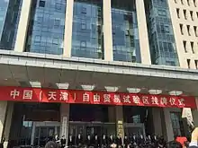 Tianjin Free-Trade Zone (Tianjin FTZ, colloquially known as 天津自由贸易区/天津自贸区 in Chinese), officially China (Tianjin) Pilot Free-Trade Zone (Chinese: 中国(天津)自由贸易试验区; pinyin: Zhōngguó (Tiānjīn) Zìyóu Màoyì Shìyànqū) is a free-trade zone in Tianjin, China. It is the only free-trade zone in North China.[1][2] The zone covers three areas — Tianjin Airport Economic Area, Dongjiang Free Trade Port Zone and Binhai New Area Central Business District.[3][4]