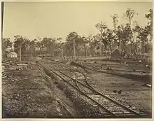 The station was built in 1877, two years before the line from Gympie to Maryborough was completed. It consisted of a station building and a platform, and two sidings running parallel to the main North Coast line.[2][3] After the station closed, the building was moved to Mayne Street and restored as a tourist information centre. Some of the siding platforms still exist, however the station platform has been removed.