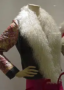 Tibetan fur refers to the white wool of the Tibetan lamb. Its origin is not really from Tibet, but from the Chinese provinces Shansi, Shensi und Hopeh (Tschilli). The wool is soft and around 5 in (12 cm) long, and has a slight waviness to it, being the only curly long-haired fur,[1] making it popular for doll's hair.