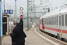 After sunset they give signals with flashlights. Train drivers are not allowed to move the train without the conductor in chief giving them the ready signal. Conductors, along with train drivers, are responsible for keeping the trains on schedule. There is always at least one conductor in chief on passenger trains in Hungary. No passenger trains may depart without one, as only they have the right to give the departure signal.