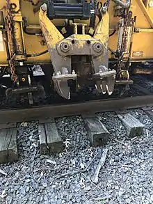 A Tie extractor/inserter (also known as a TKO for Tie Knock Out, or by various combinations of tie exchanger, extractor, replacer, or inserter) is a self-propelled railroad maintenance of way vehicle that removes old railroad ties from tracks and inserts new ones. By using mechanical and hydraulic force, a tie extractor/inserter can replace ties much faster and with more precision than is possible by hand.[1]