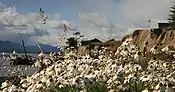 Trouble for the Yaghan people began in 1880, when European missionaries entered the area. European settlers brought diseases such as measles, causing a rapid and nearly complete extinction of the Yaghan people. The Yaghan tribe was reduced in number from about 3,000 people in 1880 to less than 100 by the 1990s. Many of them were killed by European settlers' "shoot exercises" and deliberate poisoning to exploit the sea lions, the staple of the Yaghan diet.[7][8] Following the death of 84-year-old Emelinda Acuña (1921 – 12 October 2005), only one native speaker remains, Cristina Calderón of Villa Ukika on Navarino Island, Chile.[26] What can be seen of the Yaghan people and their settlements today are mainly relics in the form of piles of mussel shells overgrown with grass near the seashore. Some antiquarian links with the tribals can also be seen in the "End of the World Museum" in Ushuaia.[8]