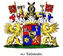 Tiesenhausen is the name of a Baltic German nobility family. The origins of the family are in Lower Saxony. During the Baltic crusades they settled in Livonia in the first half of the 12th century. Bishops Albert of Riga and Herman of Tartu had a sister whose husband Engelbertus de Tisenhuse was the progenitor of the family in the Baltic. After some time in southern Livonia in the early stages of occupation, Engelbertus joined his brother-in-law bishop Herman to obtain the northern Livonian country of Ugaunia around Otepää and Tartu. It was Ugaunia where the family held its main early properties and positions. Engelbertus' son married a daughter of the castellan of Koknese in Latgale and through this marriage, the family claims descent from indigenous princes of the Latgalians. Some branches of Tisenhusen clan settled later to the Latvian Vidzeme holdings of Ergli and Berzaune. From the ancestral place of Ugaunia, sons of the family managed to obtain estates in other parts of Estonia, also so-called Danish Estonia and Osilia-Rotalia, both by services and by marriages. (Raplamaa was apparently a favorite place in northern Estonia for them to obtain estates.)