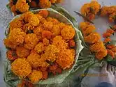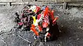 The first day of Tihar is called Kaag (crow) Tihar.[8] Crows and ravens, believed to be the messengers of the death god Yama, are worshipped with offerings of grains, seeds, and sweets placed on the roofs or out on the streets.[9] The cawing of crows and ravens is associated with sadness and grief in Hinduism as these birds are believed to carry messages from Yama. By feeding the crows, devotees hope to appease them and ward off death and grief for the coming year.[2]