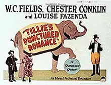 Tillie's Punctured Romance is a lost[1] 1928 American silent circus comedy film starring W. C. Fields as a ringmaster and Louise Fazenda as a runaway. Written by Monte Brice and Keene Thompson and directed by A. Edward Sutherland, this movie has nothing to do with the 1914 Charlie Chaplin film aside from sharing the same title. However, Chester Conklin and Mack Swain appear in both films.