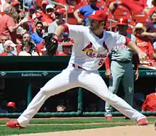 Cooney made his major league debut on April 30, 2015, replacing the injured Adam Wainwright in the Cardinals' starting rotation.[11] Cooney struggled in his debut, and was optioned back to Memphis the next day.[12] On May 17, he was named the PCL Pitcher of the Week after allowing a 0.66 ERA in 13+1⁄3 IP against the New Orleans Zephyrs and Omaha Storm Chasers. He also held batters to a .143 batting average against (7-for-49).[13] In his first 14 starts of the season with Memphis, Cooney completed 88+2⁄3 IP, allowing 27 ER for a 2.74 ERA. He also struck out 63 batters and was 6–4 in won–loss decisions. He was named to the 2015 PCL All-Star squad on July 1.[8] The Cardinals recalled him the next day when they placed outfielder Jon Jay on the disabled list.[14]