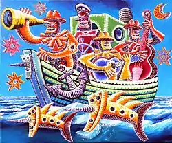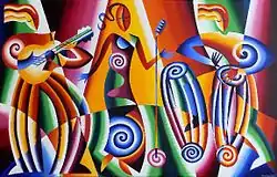 Tim Davies (born 1959, Derbyshire, England) is a British pop art artist, currently living in Hanover, Germany. He is known for intensely colorful drawings nearly always depicting figures and often are related to music or dance. He designed CD covers for musicians like Al Di Meola, Robert Plant and Pink Floyd.