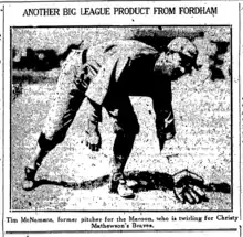 Timothy Augustine McNamara (November 20, 1898 in Millville, Massachusetts – November 5, 1994 in North Smithfield, Rhode Island) was a pitcher in Major League Baseball who played from 1922 through 1926 for the Boston Braves and New York Giants.