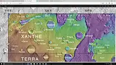![]() Timbuktu Crater, located on the edge of Capri Chasma. Image taken with THEMIS. Click on image to see more details. | |