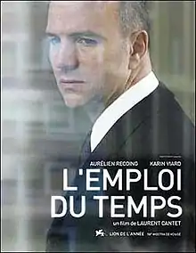 Time Out (French: L'Emploi du temps or 'Le Vendu') is a 2001 French drama film directed by Laurent Cantet and starring Aurélien Recoing and Karin Viard.[3] The film is loosely based on the life story of Jean-Claude Romand (though without the criminal element), and it focuses on one of Cantet's favorite subjects: a man's relationship with his job.
