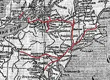 - 13 April 1846: Line from Philadelphia to Wilmington, Delaware starts operations.[38]