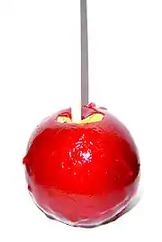 - Candy corn is a confection in the United States and Canada, popular primarily in autumn around Halloween, that mimics the shape and coloration of corn kernels—a broad yellow end, a tapered orange center, and a pointed white tip. Candy corn is made primarily from sugar, corn syrup, artificial coloring and binders. It is generally thought that George Renninger, an employee of the Wunderlee Candy Company, invented candy corn in the 1880s.[60] However, the earliest references credit the Goelitz Confectionery Company, now known as the Jelly Belly Candy Company, for introducing candy corn or "chicken feed" to the American public in 1898.[61]