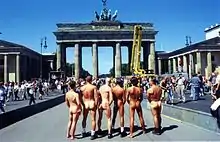 NakedBerlin Group of nude men among hundreds of tourists at Berlin’s Brandenburg Gate (photographed by Team Henning von Berg) (1999)