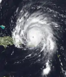 The season produced 21 tropical cyclones, of which 19 intensified into tropical storms, 11 of which became hurricanes, and five became major hurricanes.[4][nb 2] The four most notable storms during the season were hurricanes Luis, Marilyn, Opal and Roxanne. Luis caused extensive damage in the northern Leeward Islands in excess of $2.5 billion (1995 USD).[4] Marilyn affected the same area a few days later, causing eight deaths and damages in excess of $2 billion in the U.S. Virgin Islands.[6] Opal was a strong hurricane that, after battering the Yucatán Peninsula of Mexico, cross the Gulf of Mexico and made landfall near Pensacola Beach, Florida. There were 27 hurricane-related deaths were reported in the Southeastern United States.[7] Roxanne caused widespread flooding and crop damage throughout much of the Yucatán Peninsula, and killed at least six people, due to its erratic movement.[8] Following the 1995 season, these four storm names were retired from reuse in the North Atlantic by the World Meteorological Organization.[9]