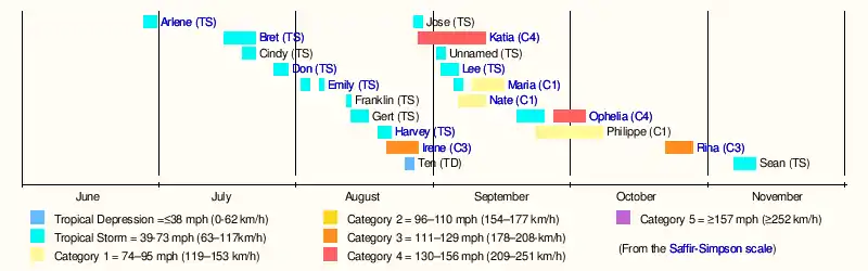 | Timeline of the 2011 Atlantic hurricane season | |||||