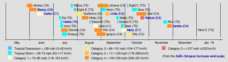 | Timeline of the 2015 Pacific hurricane season | |||||