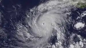 Throughout the season, 31 tropical depressions developed, 26 of which became tropical storms, a record-tying 16 of them reached hurricane strength, and a record-breaking 11 achieved major hurricane intensity.[nb 1] Activity in the Central Pacific shattered records, with 16 tropical cyclones forming in or entering the basin; the previous highest was 11 during the 1992 and 1994 seasons.[4] On August 30, three hurricanes at Category 4 strength—Ignacio, Jimena, and Kilo—existed simultaneously in the Northeastern Pacific, which was a first for the basin.[5] On October 23, Hurricane Patricia became the strongest hurricane ever recorded in the Western Hemisphere, with a minimum atmospheric pressure of 872 mbar (hPa; 25.75 inHg) and maximum sustained winds of 215 mph (345 km/h). Activity in the basin was boosted by the strong 2014–16 El Niño event, which brought anomalously high sea surface temperatures and low vertical wind shear that helped the numerous systems form and intensify.[6][7]