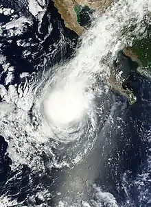 - 06:00 UTC (12:00 a.m. MDT) at 10.8°N 109.9°W – Tropical Depression One-E develops from an area of disturbed weather about 830 mi (1,335 km)[nb 2] south of the southern tip of the Baja California Peninsula.[10]
