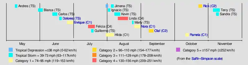 | Timeline of the 2021 Pacific hurricane season | |||||