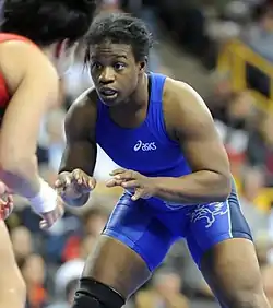 Tina George (born November 5, 1978) is a retired American freestyle wrestler who won a gold medal at the 2003 Pan American Games. She was second at the 2002 and 2003 world championships, both times losing to Saori Yoshida.[1]