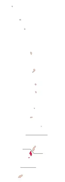 Tinian Municipality is one of the four constituent municipalities of the Northern Mariana Islands. It consists of the islands of Tinian and Aguijan and their offshore islets. The municipality is the second southernmost in the Northern Marianas and has a land area of 108.1 km2 (41.7 sq mi). The 2000 census population was 3,540 persons, all living on the island of Tinian (Aguijan is uninhabited). The municipal seat and main village of the island of Tinian is San Jose, situated on the southwest coast.[1]
