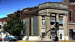 Tipton State Bank is a historic building located in the central business district of Tipton, Iowa, United States. It was listed on the National Register of Historic Places in 2000.[1] A bank on this location in Tipton goes back to 1877.[2] Over the years it was known as Cedar County Bank, First National Bank of Tipton, and City National Bank. The directors of City National Bank voted on March 28, 1923, to build a new bank building. They hired the Clinton, Iowa architectural firm J.C. Woods & Co. to design the Neoclassical style structure. Construction was completed in 1924. The east facade of the two-story building features three columns with capitals in the Corinthian order. Around the corner on the south elevation are two full size pilasters. The windows of that elevation were replaced with glass blocks in 1953.[2] After the National Banking Holiday the bank resumed operations as the Tipton State Bank. It continued to occupy this building until they built a new facility across Cedar Street in 1967.