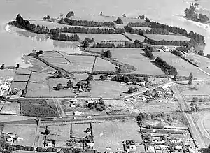 The railway through Tironui was opened on 20 May 1875, as part of the Auckland and Mercer Railway, built by Brogden & Co,[8] who extended it from Penrose.[9] Duplication of the tracks between Papatoetoe and Papakura, through Tironui, started in 1929 as an employment relief scheme[10] and was completed on 29 March 1931.[3] It was electrified in 2015.[11]