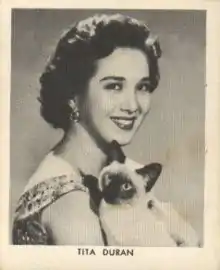 Teresita Rigo Durango Magalona (born Teresita Rigo Durango; September 30, 1928 – April 27, 1990), known professionally as Tita Duran, was a Filipina film actress who began as a child actress. She was the first successful child star of Philippine cinema. She is the daughter of Juana Duran, who is from Pinamungajan in Cebu, Philippines.