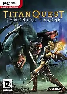 Titan Quest: Immortal Throne is an expansion pack to the 2006 action role-playing hack and slash video game Titan Quest. Developed by Iron Lore Entertainment, it was originally published by THQ in 2007: it would be Iron Lore's last original project prior to their closure in 2008. Following directly on from the events of Titan Quest, Immortal Throne follows the player character as they are confronted by a new wave of monsters attacking the mortal realm from the Underworld. Gameplay is identical to that of Titan Quest, with navigation through locations around the Ancient world and action combat. For Immortal Throne, improvements were made to the inventory system and multiplayer, and a new character class was added.