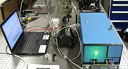 The Ti:sapphire laser was invented by Peter Moulton in June 1982 at MIT Lincoln Laboratory in its continuous wave version. Subsequently, these lasers were shown to generate ultrashort pulses through Kerr-lens modelocking.[5] Strickland and Mourou, in addition to others, working at the University of Rochester, showed chirped pulse amplification of this laser within a few years,[6] for which these two shared in the 2018 Nobel Prize in physics[7] (along with Arthur Ashkin for optical tweezers). The cumulative product sales of the Ti:sapphire laser has amounted to more than $600 million, making it a big commercial success that has sustained the solid state laser industry for more than three decades.[8]