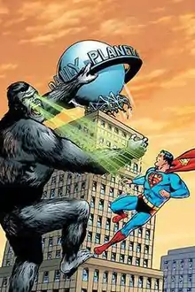 ![]() Titano attacking the Daily Planet building in the style of King Kong, from Showcase Presents Superman Volume 2 (2006); art by Curt Swan and George Klein. | |