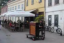 Tkalčićeva Street (Croatian: Tkalčićeva ulica, formally: Ivan Tkalčić Street, Ulica Ivana Tkalčića) is a street in the Zagreb, Croatia city center.[1] Extending from the vicinity of the central Ban Jelačić Square to its northern end at the Little Street (Croatian: Mala ulica), the street flows between the Gornji Grad in the west and Nova Ves in the east. The street is administratively within the Gornji Grad–Medveščak city district, constituting the former "August Cesarec" commune (abolished in 1994). According to the 2001 Croatian census, the street has 1,591 inhabitants.[2]