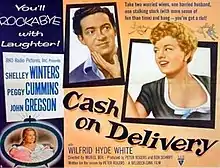 To Dorothy a Son is a 1954 British comedy film directed by Muriel Box and starring Shelley Winters, John Gregson and Peggy Cummins.[3] Known in the U.S. as Cash on Delivery, it is based on the 1950 play To Dorothy, a Son by Roger MacDougall which had enjoyed a lengthy run in the West End.