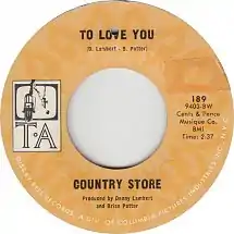 "To Love You" is a song by American bluegrass band Country Store.[2] It was a standalone single and was the group's only charting hit. The song became a minor hit in the United States in late 1969 and early 1970, reaching #85 on Record World in December and #103 on Billboard in January.[3][4]