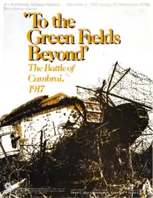 On 20 November 1917, the British attacked the German trenches of the Hindenberg Line, using the newly invented tank as a spearpoint. In words attributed to the first commander of the British Tanks Corps, Brigadier General Hugh Elles, the Allies hoped that the tanks would lead them "Through the mud and the blood to the green fields beyond".[1] The attack went well at first, but then faltered on the second day as the Allies tried to advance on the strongpoint of Bourlon Woods. A strong German counterattack on 29 November forced the Allies back to the line they had gained on the first day of the battle. To the Green Fields Beyond is a two-player wargame at the operational level that simulates the Battle of Cambrai.[2]