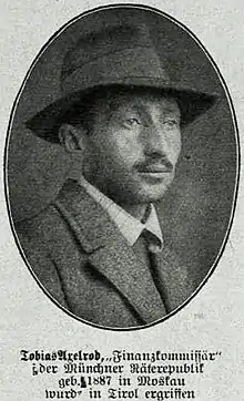 Tobias Akselrod (October 1887 in Moscow – 10 March 1938 in Kommunarka shooting ground, Moscow Oblast) was a Russian revolutionary and 1919 member of the Bavarian Soviet Republic.
